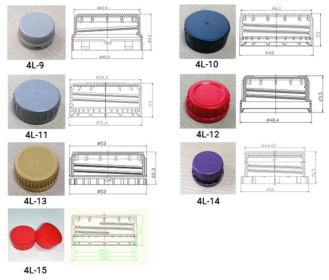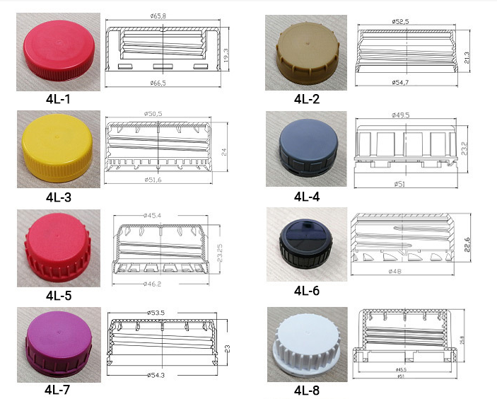Colors: White, red, black, blue, gray, yellow in stock, other customized color available Used for 1L, 2L, 4L, 6L Plastic jerry can caps.